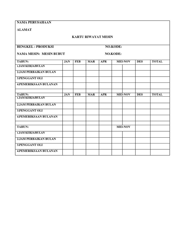 Departement Bagian. Inilah contoh kartu perawatan mesin dan hal lain yang berhubungan erat dengan contoh kartu perawatan mesin serta aspek K3 secara umum di Indonesia. Contoh form perawatan kendaraan.